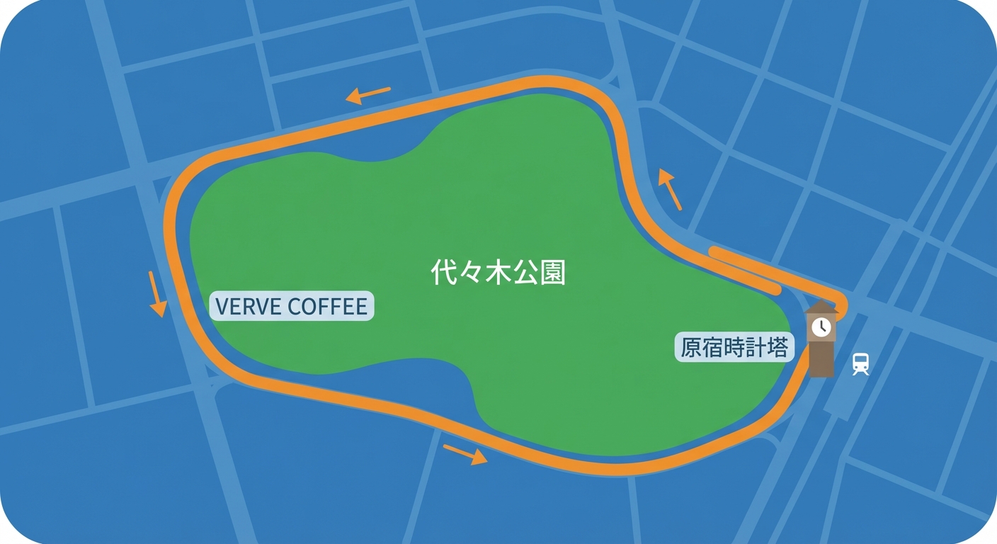 代々木公園を左回りで1〜2周。